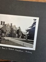 Inside, the album is scattered with old photographs, loosely arranged rather than tightly curated. There are portraits, domestic scenes, and architectural views, including a labelled image of St Anne’s School, Caversham, Reading. Some photographs are mounted with corner tabs, others feel more casually placed, adding to that sense of an evolving personal record rather than a formal album.