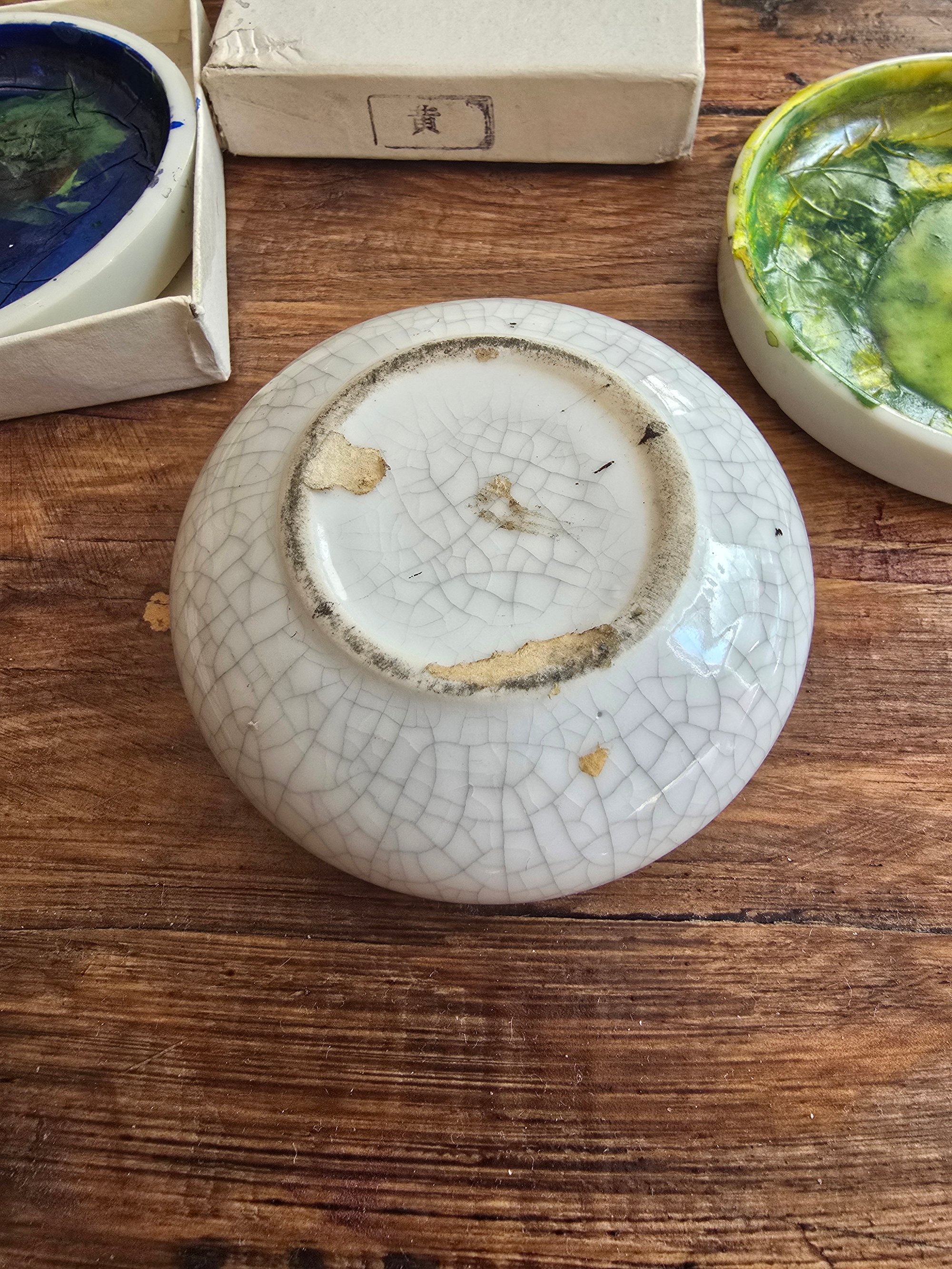 vintage ceramic pigment dish japanese style artist bowl crackle glaze studio pottery ink well