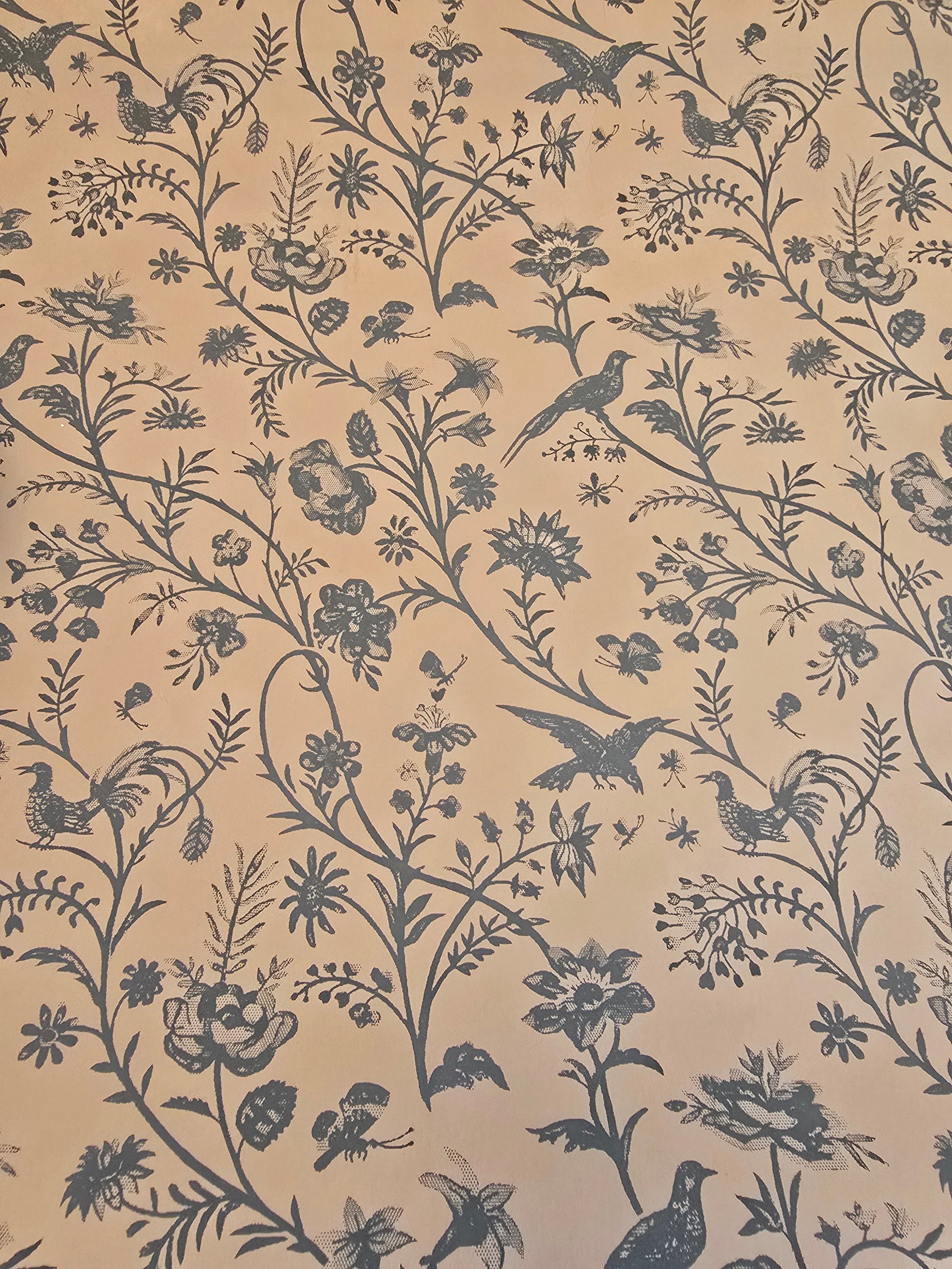 The combination of birds, florals and fine line detail gives it a timeless quality that works beautifully in both classic and modern interiors.